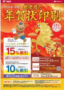 2026年 午年「書いて応援!年賀状」早期割引第一弾のご連絡です。(〆切:11/11)