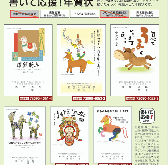 2025年9月1日 2026年午年「書いて応援!年賀状」全国の郵便局の店頭およびWebにて発売開始! 今年で6年目になりますが、日本郵便株式会社の協力のもと「書いて応援!年賀状」が、郵便局のカタログおよびWebにて発売開 […]